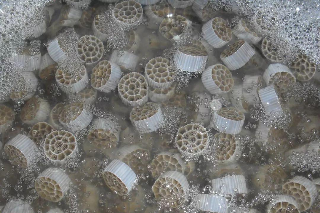 (4)MBBR工艺有时脱落一些细碎生物膜,沉淀性能较差的造成出水中的悬浮固体浓度稍高,一般可达到30mg/L左右。
